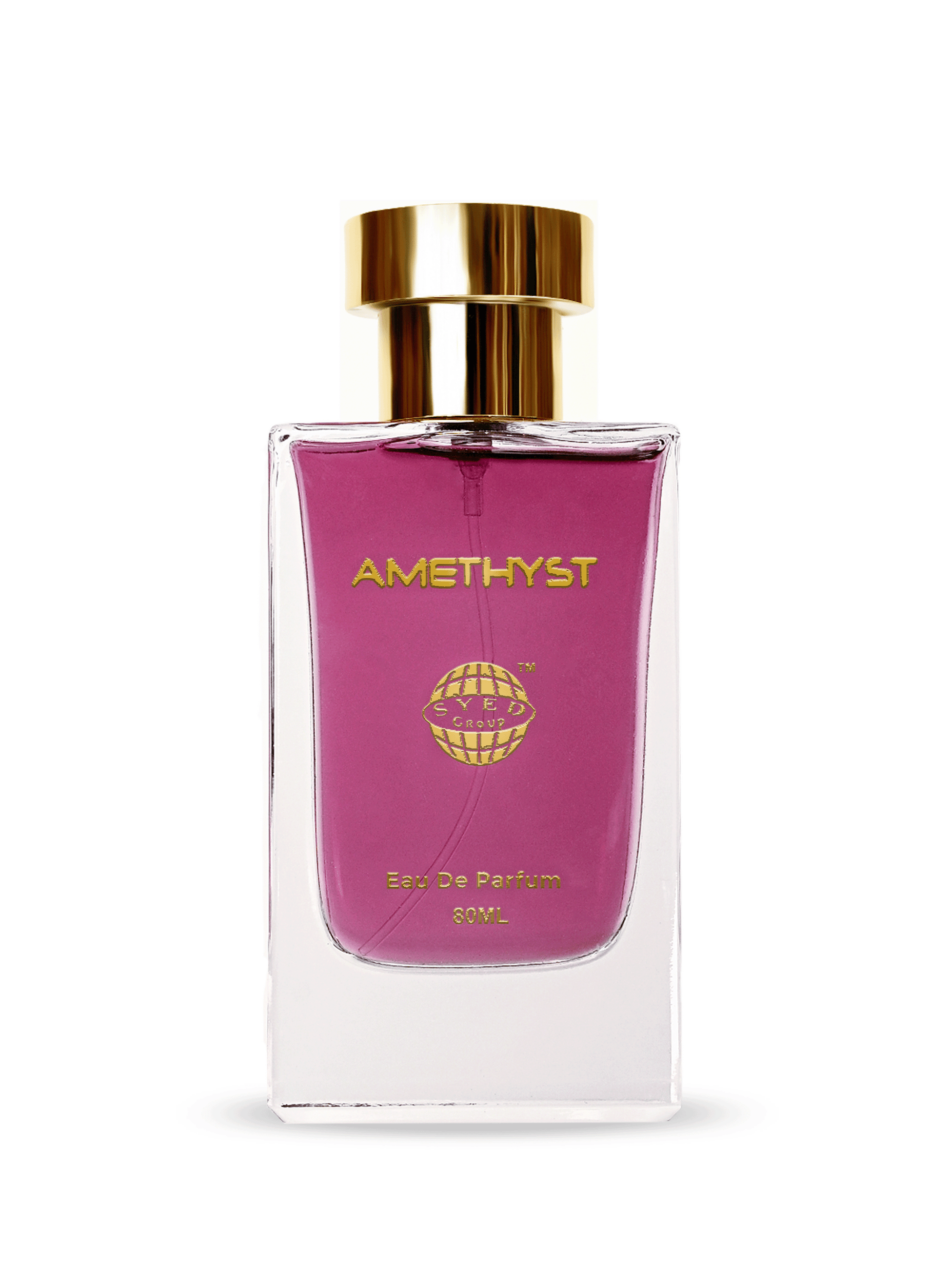 Amethyst opens with a sparkling burst of citrus yuzu, lemon, bergamot, and mandarin, lifted by cooling calone and the crisp greenery of cypress and verbena. The heart blends blue lotus with soft florals, touched by subtle spices of saffron and nutmeg, creating a balanced, modern freshness. As it dries down, smooth vetiver, cedar, sandalwood, and musk bring warmth and depth, leaving a serene, polished trail that feels both refreshing and refined.