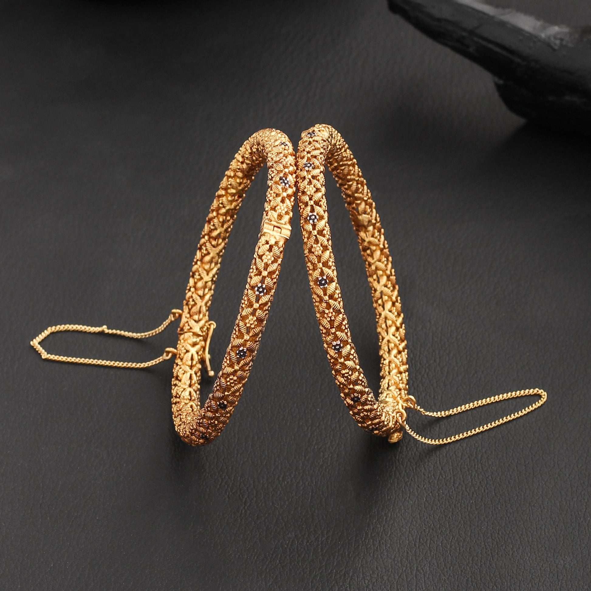 These mesh-inspired bangles feature bold texture and structured shine for a sleek, modern finish.