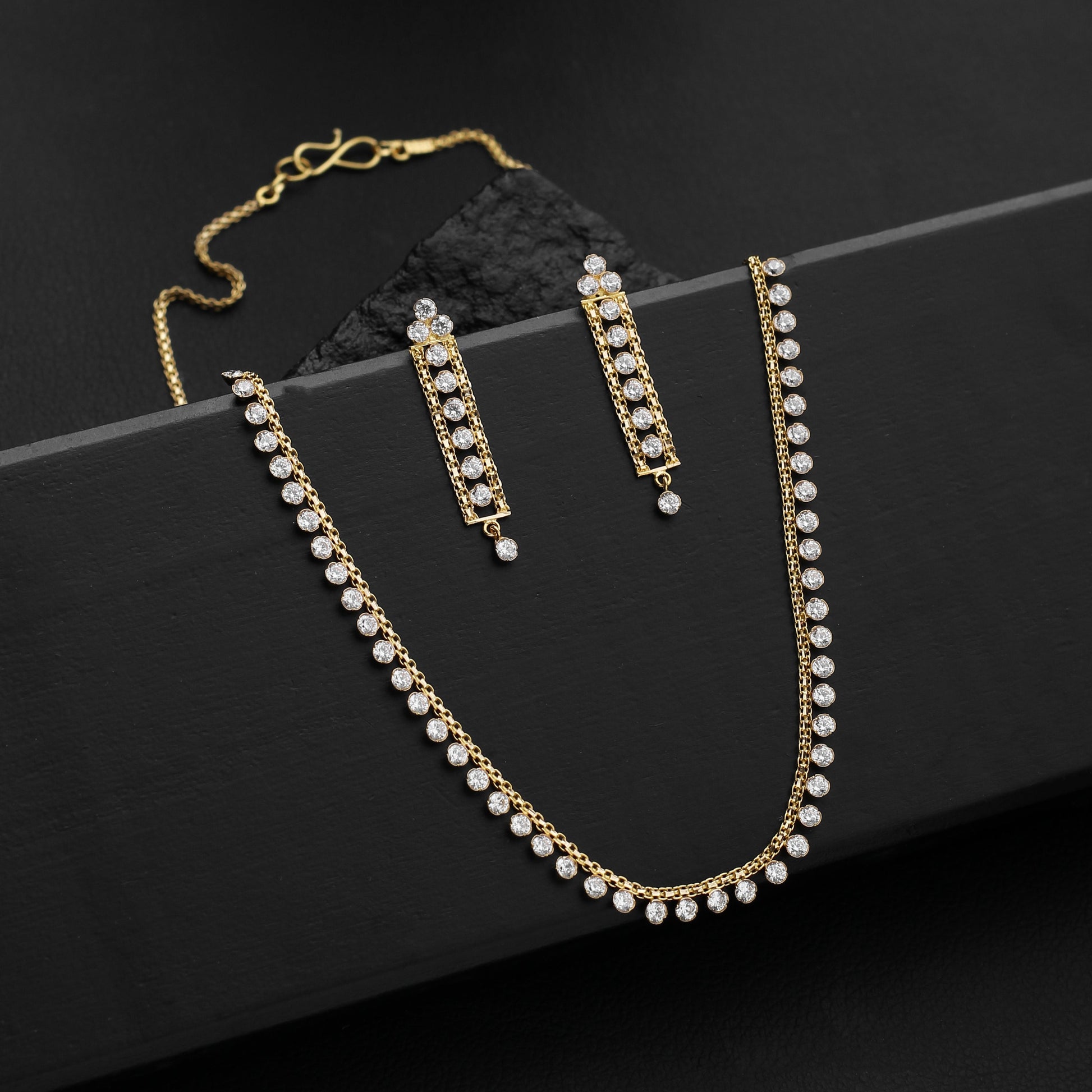 A finely crafted necklace and earrings set, adorned with subtle sparkle and modern charm for a polished, everyday finish.